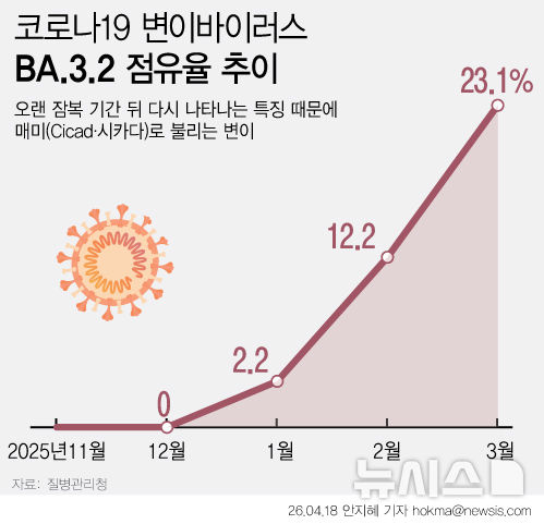 두 달새 19.8%p↑…코로나 변이 바이러스 '매미'
