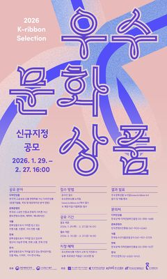 한국공예·디자인문화진흥원(이하 공진원)은 2026년 ‘우수문화상품(K-Ribbon Selection)’ 신규 지정 공모 접수를 오는 13일부터 27일까지 진행한다고 밝혔다. 이번 공모는 디자인상품·한복(공진원), 문화콘텐츠(한국콘텐츠진흥원), 식품(한국농수산식품유통공사), 한식(한식진흥원) 등 총 5개 분야에서 이뤄진다. ‘우수문화상품(K