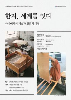 세계 속에서의 한지 활용 방안을 모색하는 토론장이 마련된다. 국가유산청 국립문화유산연구원이 25일 연구원 문화유산보존과학센터에서 '한지, 세계를 잇다: 북미에서의 계승과 창조의 여정'을 주제로 세미나를 개최한다고 24일 밝혔다. 이 행사는 전통 한지 제작 기술을 계승해 미국에서 한지 제작, 교육, 한지를 이용한 작품 활동을 하는