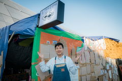 "한 번 읽는 것보단 직접 써보는 게 마음에 더 새겨지잖아요." 23일 서울 중구 동대문디자인플라자(DDP) 야외 잔디언덕에 마련된 '필사카페'는 여느 카페와는 전혀 다른 풍경을 빚어냈다. 천막과 박스로 지어진 움막과도 같은 카페 공간에는 열 명 남짓한 손님들이 모여앉아 자신이 고른 글 한편을 옮겨 쓰고 있었다. 벽과 바닥