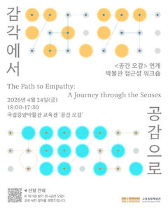 국립중앙박물관은 오는 24일 박물관의 교육관 '공간 오감'에서 박물관 접근성 강화를 위한 워크숍 '감각에서 공감으로'를 개최한다고 20일 밝혔다. 박물관, 미술관 등 문화예술 관련 기관 종사자나 박물관 접근성에 관심 있는 일반인은 누구나 참여할 수 있다. · 박물관은 "장애인의 날(4월 20일)을 맞아 시각장애인의 문화 향유 확대를 위