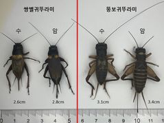 농촌진흥청은 파충류 먹이용 곤충 시장에서 국내 서식종인 '뚱보귀뚜라미'(Duolandrevus ivani)를 새로운 사육 후보군으로 발굴하고 실내 사육 적정 조건을 마련했다고 20일 밝혔다. 농진청에 따르면, 현재 국내 파충류 먹이 곤충 시장은 쌍별귀뚜라미(Gryllus bimaculatus) 한 종에 구조적으로 편중돼 있다. 쌍별귀뚜라미는 생