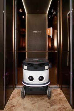 "버튼 안 눌러도 척척"… 래미안 배달 로봇, 엘리베이터 타는 비밀은