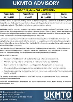 이란혁명수비대(IRGC)가 28일(현지시간) 미국·이스라엘 공습 이후 호르무즈 해협 통항이 허용되지 않는다고 선박들에게 통보하고 있는 것으로 알려졌다. 영국해사무역기구(UKMTO)는 이날 '호르무즈 해협 관련 긴급 권고문'에서 "아라비아만에서 운항 중인 선박의 보안책임자(CSO)들로부터 VHF 채널 방송을 통해 '호르무즈 해협이 폐쇄됐다는