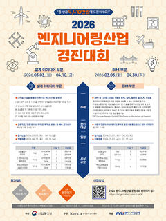 한국엔지니어링협회는 2026 엔지니어링산업 경진대회를 개최한다고 2일 밝혔다. 이 대회는 디지털 기반 기술 역량을 갖춘 우수 인재를 발굴·육성하기 위해 마련된 행사다. 산업통상부가 주최하고 엔지니어링공제조합이 후원한다. 공모는 설계 아이디어과 건설정보모델링(BIM) 2개 부문으로 나눠 오는 3일부터 접수 받는다. 설계 아이디어 부문은 고등학