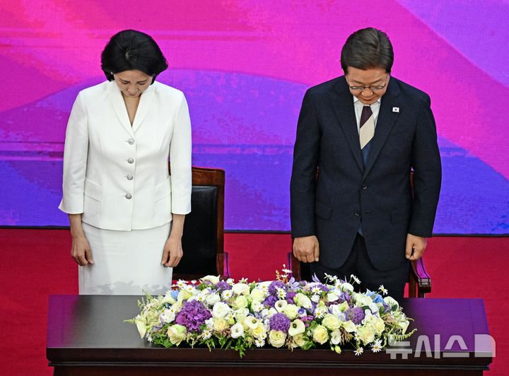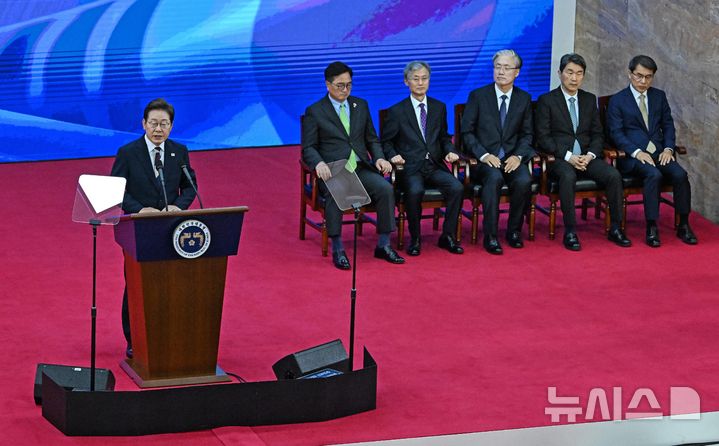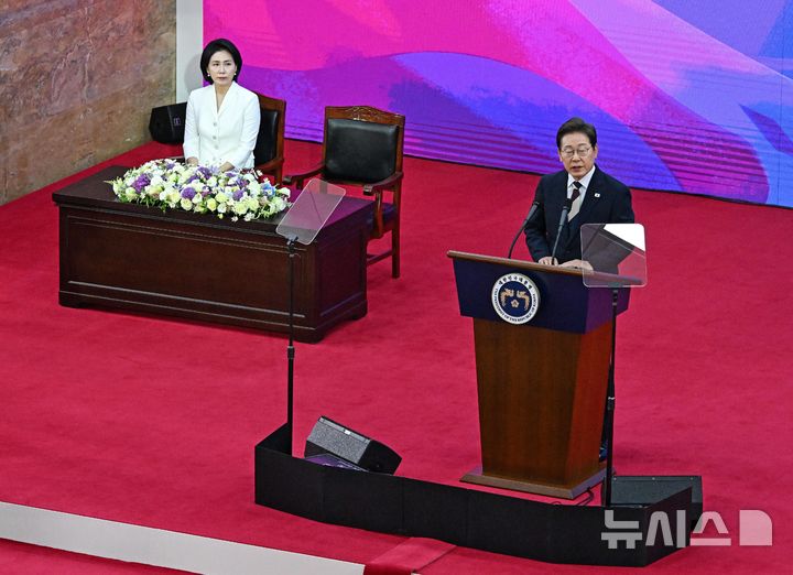 국기에 대한 경례하는 이재명 대통령-김혜경 여사