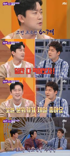 방송인 김대호가 고정 프로그램이 7개 정도 된다고 말했다. 그는 지난 12일 방송한 JTBC 예능 '톡파원 25시'에 게스트로 출연했다. 김대호는 "일주일에 고정으로만 6~7개 된다"며 "아귀처럼 살자는 마음으로 프리 선언을 했다"고 했다. 그는 "일단 다 먹어보자 했다. 아나운서 직장 생활