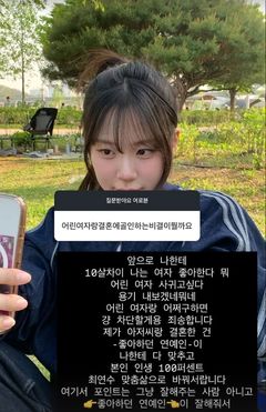최현석 셰프의 딸인 모델 최연수가 무례한 질문에 단호하게 대응했다. 최연수는 22일 소셜미디어를 통해 한 팬에게 "어린 여자와 결혼에 골인하는 비결이 뭘까요"라는 질문을 받았다. 이에 최연수는 "앞으로 나한테 '열 살 차이 나는 여자 좋아한다, 어린 여자 사귀고 싶다, 용기 내보겠네, 어린 여자와 어쩌고' 하면 그