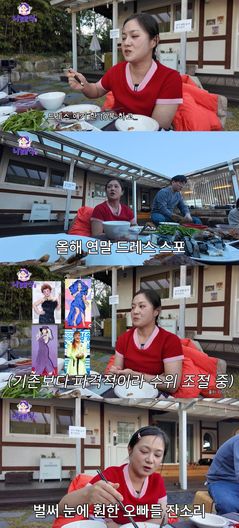 코미디언 박나래가 연말 시상식 드레스 콘셉트가 가죽이라고 말했다. 그는 지난 3일 유튜브 채널 '나래식'에 올라온 영상에서 강릉으로 여행을 갔다. 박나래는 "코디랑 어제 드레스 얘기 한 10분 하고 와인만 마셨다"고 했다. 제작진이 이번 드레스 콘셉트가 뭐냐고 묻자 박나래는 "가죽"이라고 답했다.