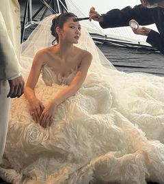 배우 김유정이 순백의 웨딩드레스를 입은 사진을 공개했다. 김유정은 2일 자신의 소셜미디어에 여러 장의 사진을 올리며 드라마 촬영 현장 비하인드를 전했다. 별다른 설명 없이 올린 사진이었지만, 영화 같은 웨딩 화보 비주얼이 팬들의 시선을 단숨에 사로잡았다. 공개된 사진 속 김유정은 오프숄더 웨딩드레스를 입고 우아한 자태를 뽐냈다.