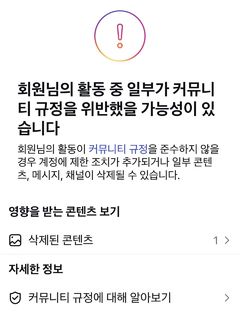 방송인 이지혜가 운영 중인 소셜미디어 계정이 규정 위반을 이유로 경고를 받았다. 이지혜는 4일 소셜미디어에 "갑자기 DM 답장도 못하고 무슨 잘못을 했나보다"라는 글과 함께 사진을 공개했다. 사진에는 이지혜가 받은 경고문을 담겼다. 경고문에는 "회원님의 활동 중 일부가 커뮤니티 규정을 위반했을 가능성이 있다.