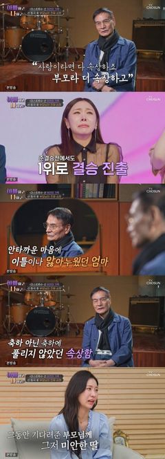 가수 허찬미 어머니가 딸이 '미스트롯4'에서 진이 되지 못하고 선이 된 후 속상해서 이틀 간 앓아 누웠다고 했다. 허찬미와 허찬미 부모는 15일 방송한 TV조선 예능프로그램 '아빠하고 나하고' 시즌3에 나와 일상을 공개했다. 허찬미 어머니는 아침부터 허찬미가 선(善)이 된 '미스트롯4' 방송을 보며 눈물을 흘렸다. 허찬미는 "이