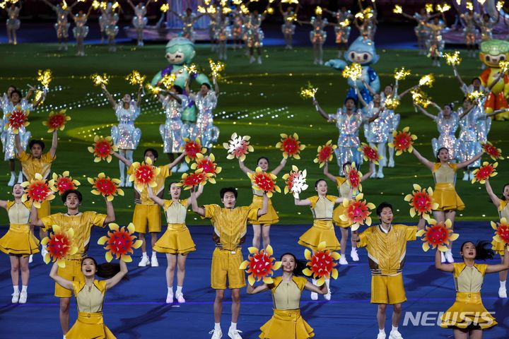 [항저우=뉴시스] 정병혁 기자 = 8일 중국 항저우 올림픽스포츠센터 스타디움에서 2022 항저우 아시안게임 폐회식 공연이 열리고 있다. 2023.10.08. [email protected]