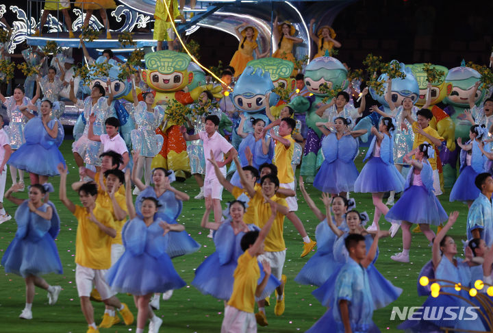 [항저우=뉴시스] 고승민 기자 = 8일 중국 항저우 올림픽스포츠센터 스타디움에서 열린 2022 항저우 아시안게임 폐막식에서 갈라 공연이 펼쳐지고 있다. 2023.10.08. [email protected]