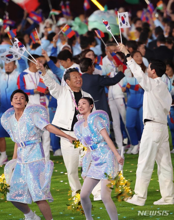 항저우 아시안게임 폐막식의 최윤 선수단장