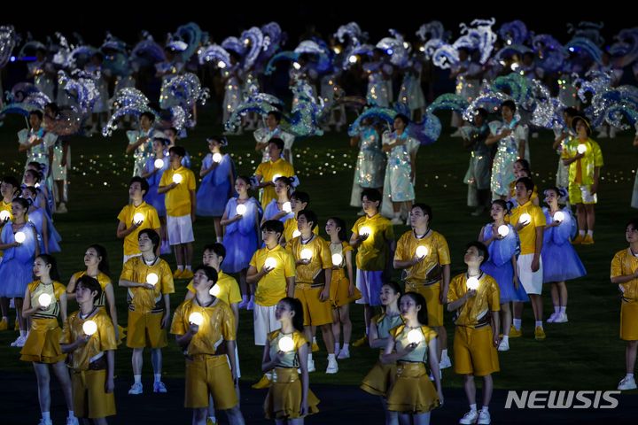 [항저우=뉴시스] 정병혁 기자 = 8일 중국 항저우 올림픽스포츠센터 스타디움에서 2022 항저우 아시안게임 폐회식 피날레 공연이 펼쳐지고 있다. 2023.10.08. [email protected]
