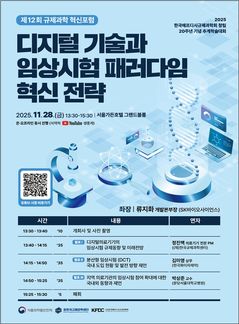 식품의약품안전처는 한국규제과학센터와 함께 '디지털 기술과 임상시험 패러다임 혁신 전략'을 주제로 하는 '제12회 규제과학 혁신포럼'을 28일 서울가든호텔에서 개최한다. 식약처는 식품·의료제품 분야 규제과학 인식 확산 및 발전방안 모색을 위해 규제과학 혁신포럼을 지난 2021년부터 운영하고 있다. 이번 포럼은 빠르게 발전하는 디지털 기술을 임