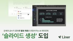 글로벌 인공지능(AI) 에이전트 스타트업 라이너가 AI 검색 결과와 라이너 라이트(Liner Write)로 작성한 비즈니스 문서를 클릭 한 번으로 발표 자료로 구현해 주는 ‘슬라이드 생성 기능’을 도입했다고 17일 밝혔다. 라이너는 이용자들이 문서 구조를 PPT 발표 자료 형태로 즉시 구현해 타인과 공유하거나 의사결정 자리에서 활용하고