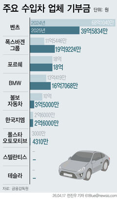 국내 주요 수입차 판매법인의 지난해 기부금 규모가 업체별로 큰 차이를 보인 것으로 나타났다. 메르세데스-벤츠는 지난해 40억원에 가까운 기부금을 집행한 반면 테슬라 등 일부 브랜드는 기부금이 거의 없거나 전무했다. 감사보고서상 기부금이 국내 환원 수준을 보여주는 지표로 받아들여지는 만큼 수입차 업계의 사회공헌 격차도 다시 부각되고 있다.
