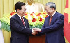 또 럼 베트남 당 서기장 겸 국가주석은 22일(현지 시간) "베트남은 인프라 개발, 스마트 시티, 반도체, 대규모 AI 데이터센터 구축, 원전, 스마트 항만 및 차세대 항만 건설 등 우선 분야에 대한 한국 기업의 투자 확대를 환영한다"고 밝혔다. 럼 당 서기장은 이날 오후 하노이 주석궁에서 이재명 대통령과 함께한 '한-베트남 공동