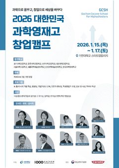 가천대학교 스타트업칼리지(가천코코네스쿨)는 전국 8개 과학영재고등학교와 함께 '대한민국 과학영재고 창업캠프(GCSH, Gachon Cocone School for High Schoolers)'를 연다고 13일 밝혔다. 캠프는 15~17일 2박3일간 가천대에서 진행한다. 경기과학고, 서울과학고, 대구과학고 등 전국 8개 과학영재고 재학생 43명이 참