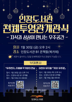경기 구리시는 인창도서관 천체투영관 개관을 기념해 오는 30일 오후 7시 ‘우주먼지’ 지웅배 작가를 인창도서관으로 초청해 강연을 진행한다고 19일 밝혔다. 지웅배 작가는 ‘우주먼지’로 불리는 천문학 박사로, 27만 구독자를 가진 인기 천문학 유튜버이기도 하다. 강연에서 지 작가는 ‘은하수 너머 우주의 끝을 찾아서’라는 주제로 인류가 은하수