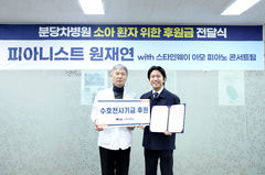 차의과학대학교 분당차병원은 피아니스트 원재연 씨가 소아 환자를 위한 '수호천사기금'을 기부하며 따뜻한 나눔을 실천했다고 8일 밝혔다. 병원에 따르면 원 피아니스트는 지난해 12월17일 열린 '스타인웨이 아모 피아니스트 콘서트 시리즈 II'의 티켓 수익금과 개인 후원금을 더해 500만원을 기부했다. 이에 윤상욱 분당차병원장이 뜻을 함께하며 동일한 금