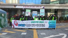 전국교육공무직본부 경기지부가 8일 경기도교육청 남부청사 앞에서 기자회견을 열고 명절휴가비 정률제 도입과 교육감 책임 결단을 촉구했다. 교육공무직 경기지부는 이날 기자회견에서 "집중교섭 결렬 책임은 정률제 거부한 교육청에 있다"며 "지자체와 중앙기관 공무직은 기본급 120% 정률제 적용받는다"고 밝혔다. 이어