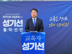 성기선 가톨릭대 교수는 19일 오후 경기도교육청 남부청사 정문 앞에서 경기도교육감 선거 출마를 공식 선언했다. 성 교수는 이날 발표한 출마 선언문에서 ▲초등 1학년 학급당 학생수 10명 상한제 ▲수능 자격고사 전환 ▲교육청 직속 갈등조정회복지원단 ▲한국형 미네르바 스쿨 도입 ▲교사의 보호와 관계 회복 ▲행정업무 경감 등을 공약으로 제시했다.