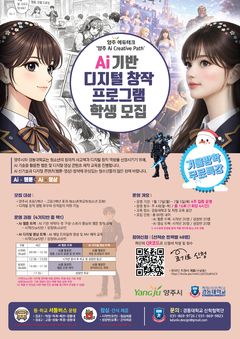 경동대학교는 양주 메트로폴캠퍼스에서 'AI기반 디지털 창작 프로그램'에 참여할 지역 초·중·고교생을 모집한다고 8일 밝혔다. 프로그램은 '양주시 에듀테크 공유학교 교육'의 일환으로 12일부터 다음달 5일까지 1회 4시간씩 총 16회로 진행된다. 경동대는 초등학교 5학년부터 고등학교 3학년까지 총 80명을 선발할 계획이다. 과정은 'AI웹툰