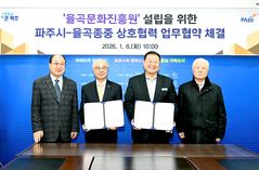 경기 파주시는 율곡 이이 선생의 학문과 철학을 체계적으로 계승하기 위해 추진 중인 '율곡문화진흥원' 설립을 위해 율곡 선생의 후손인 덕수 이씨 종중과 업무협약을 체결했다고 7일 밝혔다. 협약의 주요 내용은 율곡문화진흥원 건립부지 확보 상호협조, 율곡문화진흥원 설립 기본계획 및 추진방향에 대한 협력, 율곡이이 선생 관련 종중 보유 역사·문화자료 제공,