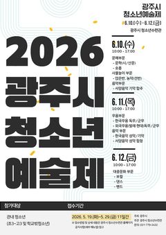 경기 광주시는 '광주시 청소년예술제' 참가자를 모집한다고 20일 밝혔다. 이번 예술제는 광주시가 주최하고 광주시 청소년수련관이 주관하며 6월10~12일 청소년수련관에서 열린다. 모집 대상은 2008년생부터 2017년생까지의 청소년이다. 다양한 예술적 재능을 표현하고 교류할 수 있는 문화예술 행사로 운영된다. 경연에서 우수한 성적을 거둔 참가자는 8