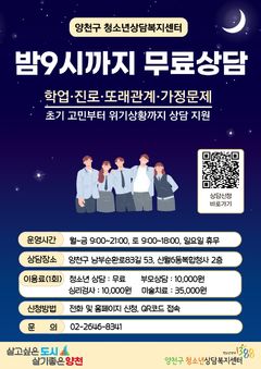 청소년 마음건강 지킨다…양천구, 오후 9시까지 무료 상담