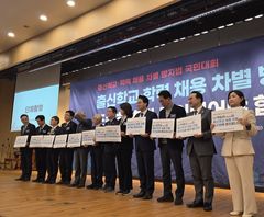 최교진 교육부 장관과 차정인 국가교육위원장 등 교육 수장들이 학벌 채용 문제를 해결함으로써 입시 경쟁과 사교육 고통을 해소해야 한다고 뜻을 모았다. 최 장관과 차 위원장은 20일 오후 출신학교채용차별방지법 국민운동과 국회 기후에너지환경노동위원회 소속 강득구 의원이 공동 주관한 '출신학교·학력 채용 차별 방지법 국민대회'에서 '채용절차의 공정화에 관