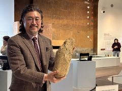 길이 42㎝, 무게 10㎏. 전곡선사박물관이 12일 공개한 '초대형 주먹찌르개'는 구석기시대 석기 가운데서도 보기 드문 크기다. 지금까지 국내외 합계에 보고된 양면석기 가운데서도 가장 크고 무거운 사례로 평가된다. 이 석기는 연천 전곡리 85-12번지 구석기 유적 최하층에서 발견됐다. 약 25만~20만년 전 형성된 지층에서 나온 것으로