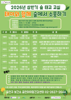 서울 금천구는 임산부의 정서적 안정과 건강한 출산을 돕기 위한 '숲 태교 프로그램'을 올해 4~5월에 걸쳐 6주 과정으로 운영한다고 15일 밝혔다. 이번 프로그램은 '태아와 함께 숲에서 소풍하기'를 주제로 호암산 치유의 숲 내 태교센터에서 진행된다. 임산부가 자연 속에서 심신을 안정시키고 태아와 교감할 수 있도록 마련됐다. 프로그램은 주중반과