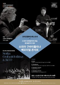 코리안챔버오케스트라(KCO)가 오는 4월 26일 오후 5시 예술의전당 콘서트홀에서 21세기 현대 음악의 전설로 불리는 소피아 구바이둘리나(1931-2025) 추모 콘서트 '소피아 구바이둘리나 & 코리안챔버오케스트라'를 개최한다. 이번 공연은 지난해 3월 별세한 고(故) 소피아 구바이둘리나를 기리는 콘서트로, 20세기 후반 이후 현대음악의