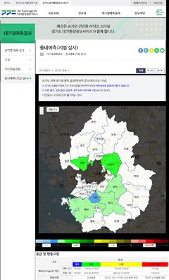 경기도보건환경연구원은 '동' 단위까지 대기질 정보를 제공하는 '대기질 동네 예측 서비스'를 시작한다고 14일 밝혔다. 이 서비스는 '동' 단위에서 미세먼지(PM-10)와 초미세먼지(PM-2.5) 농도를 확인할 수 있다. 올해는 수원, 용인, 고양, 화성, 남양주, 광주 등 6개 시에서 시범 사업을 시작한다. 같은 시군 안에서도 주거환경, 교통
