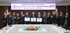 경기 용인시는 19일 시청에서 한국기계연구원(KIMM), 용인시산업진흥원과 '첨단산업 육성 및 반도체 경쟁력 강화를 위한 업무협약'을 체결했다. 이날 협약은 기업 단독으로는 활용이 어려운 국가 연구 인프라를 지역 기업이 활용할 수 있도록 하기 위해 마련됐다. 협약 내용은 ▲첨단산업 분야 연구개발·상용화 상호 협력 ▲소부장 기업 기술 실증(시험