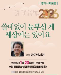안도현 시인이 20일 수원을 찾는다. 우리 사회의 담론과 대안을 모색하는 경기사회포럼은 새해 첫 번째 공식 포럼을 20일 오후7시 수원 팔달문화센터 공연장(예당마루홀)에서 개최한다. 이 자리에는 '연탄재 함부로 발로 차지마라~'등의 시로 널리 알려진 안도현 시인을 초청, '쓸데없이 눈부신 게 세상에는 있어요'라는 주제로 새해 희망을 시민들