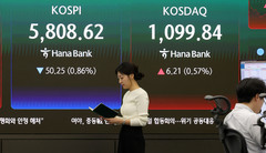코스피 5808.62▼0.86%), 코스닥 1099.84(▲0.57%), 원·달러 환율 1489.3원(▲6.8원) 마감