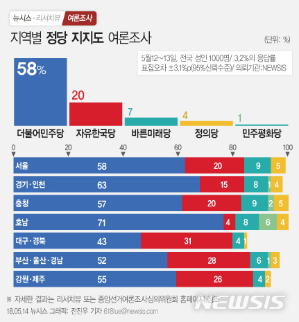 [뉴시스-리서치뷰 여론조사] 與, 지방선거 광역비례 지지도에서 모든 권역 1위