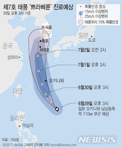 "태풍 쁘라삐룬 북상 중" 광주·전남 예상 강수량 100~250㎜