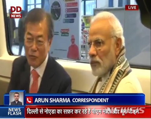 文대통령·모디 총리, 지하철 타고 삼성전자 신공장 깜짝 이동