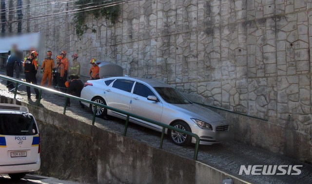 사찰 입구 내리막길에 누워있던 여성 승용차에 치여 중상