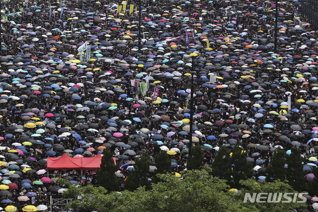 홍콩 시민, 캐리 람 행정장관 사퇴 요구 '검은 대행진' 시작