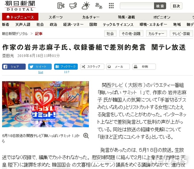 日예능 "한국인은 손목 긋겠다는 추녀" 비하발언 방송 논란