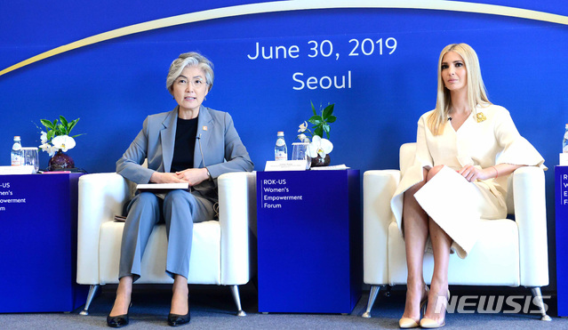 강경화 만난 이방카 "한반도 평화 구축에 北 여성들 기여 클 것"