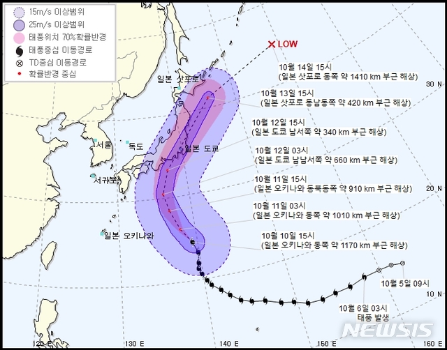 태풍 '하기비스', 토요일 도쿄 강타…강풍 반경 500㎞