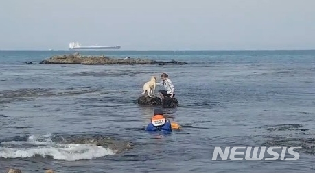갈매기 쫓아 바다로 간 개, 그 개를 구하러 뛰어든 여성